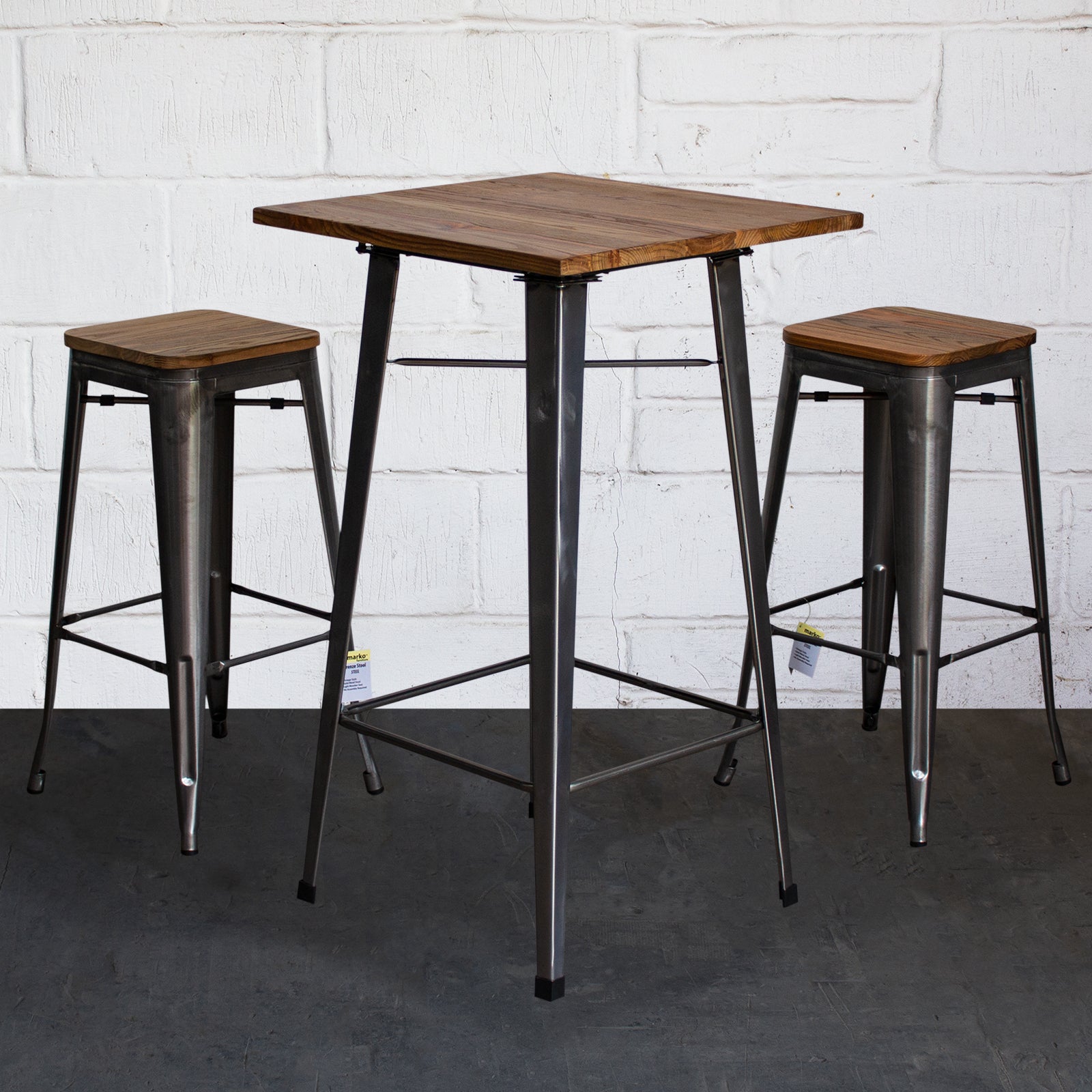 3PC Lodi Table & Firenze Bar Stool Set - Steel