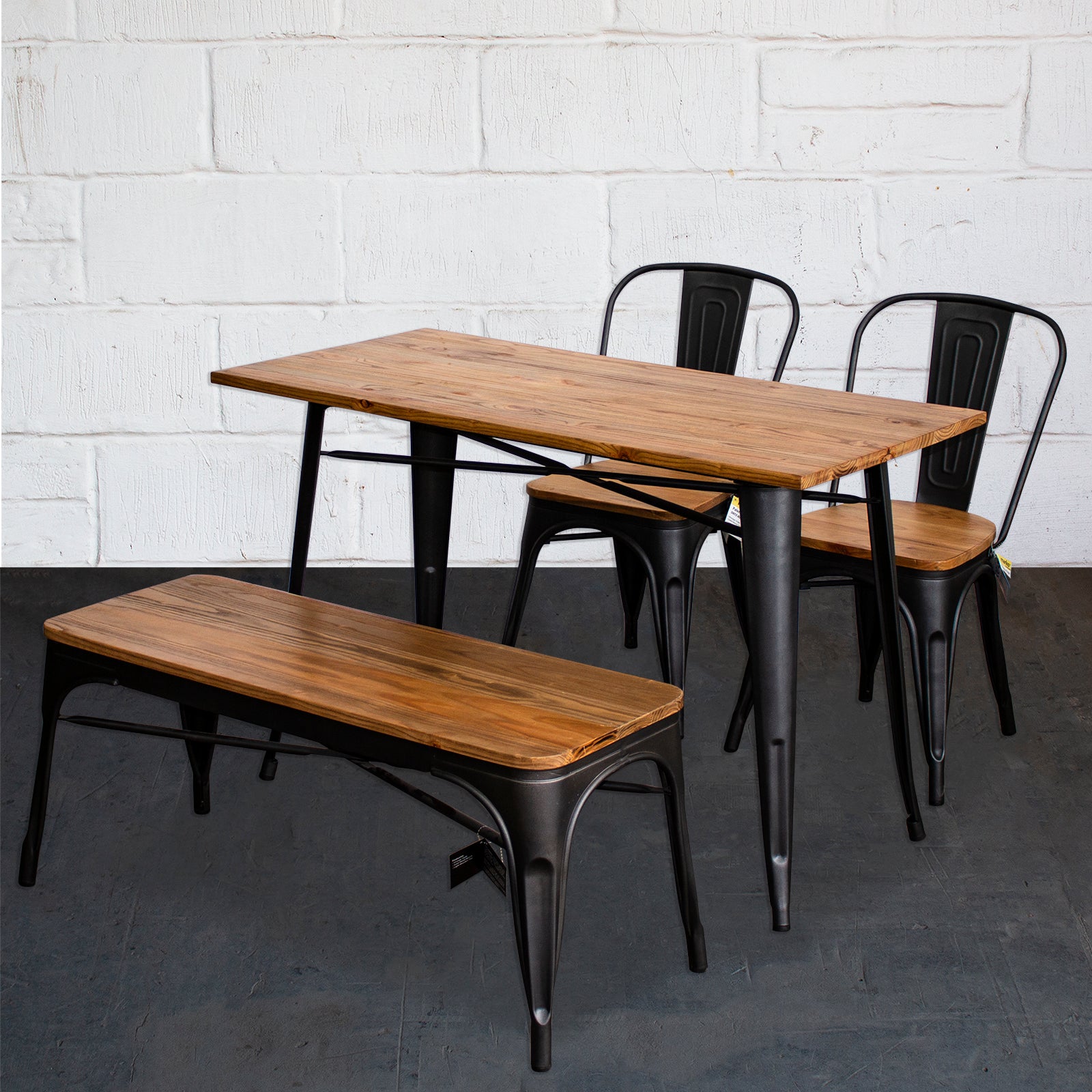 4PC Prato Table, 2 Palermo Chairs & Sicily Bench Set - Onyx Matt Black