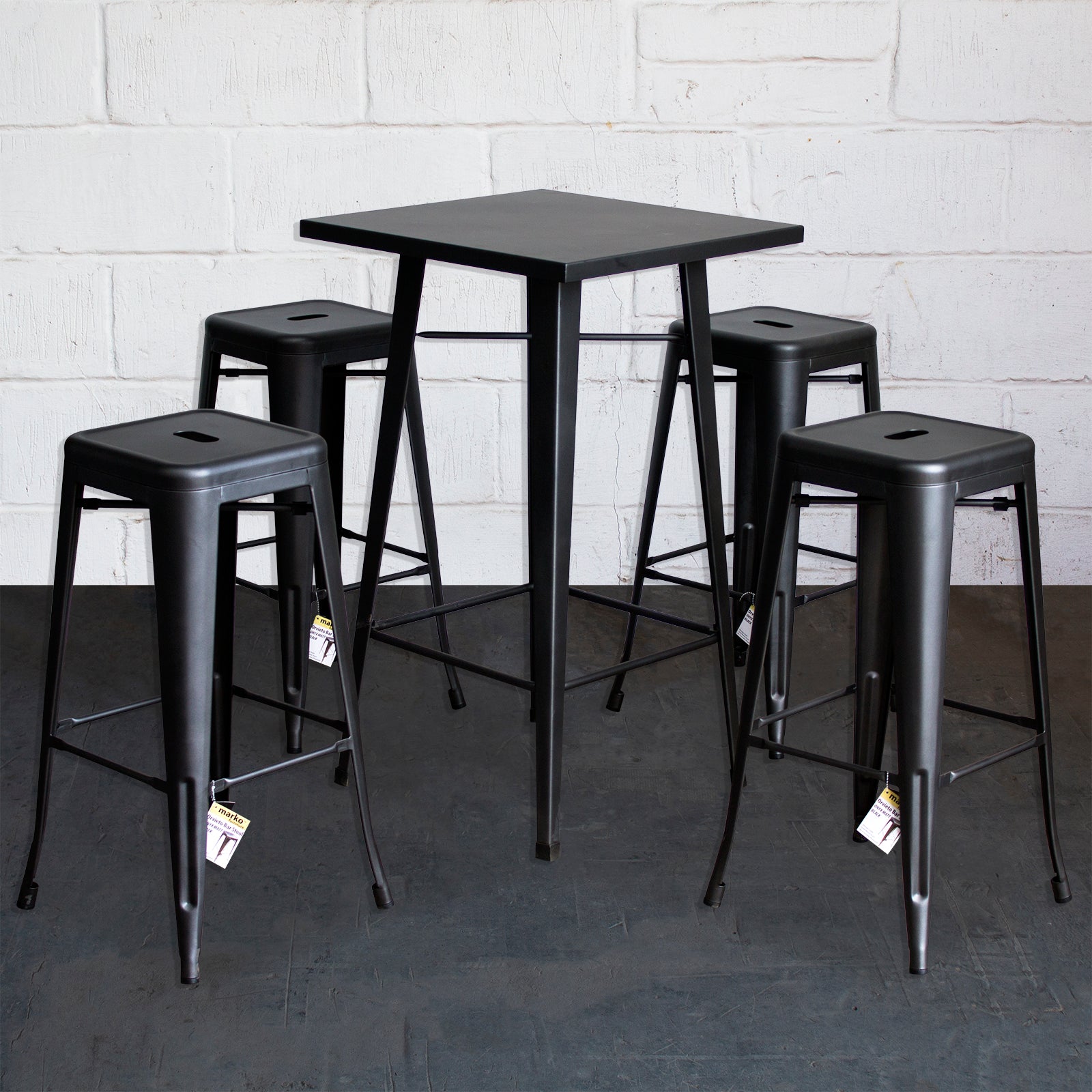 5PC Laus Table & Orvieto Bar Stool Set - Onyx Matt Black