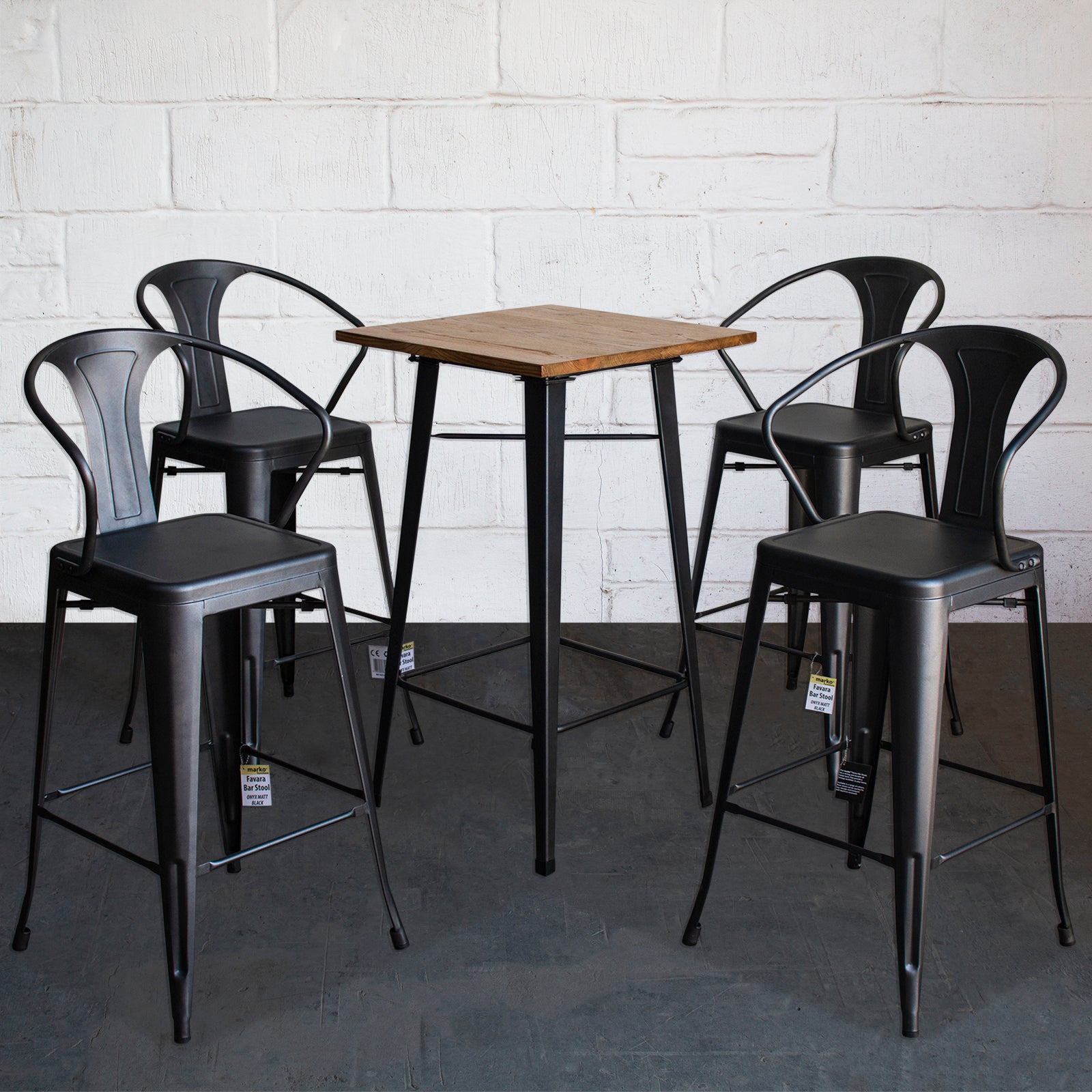 5PC Lodi Table & Favara Bar Stool Set - Onyx Matt Black