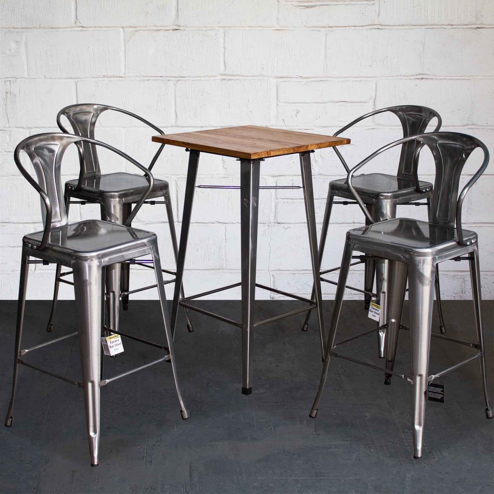 5PC Lodi Table & Favara Bar Stool Set - Steel
