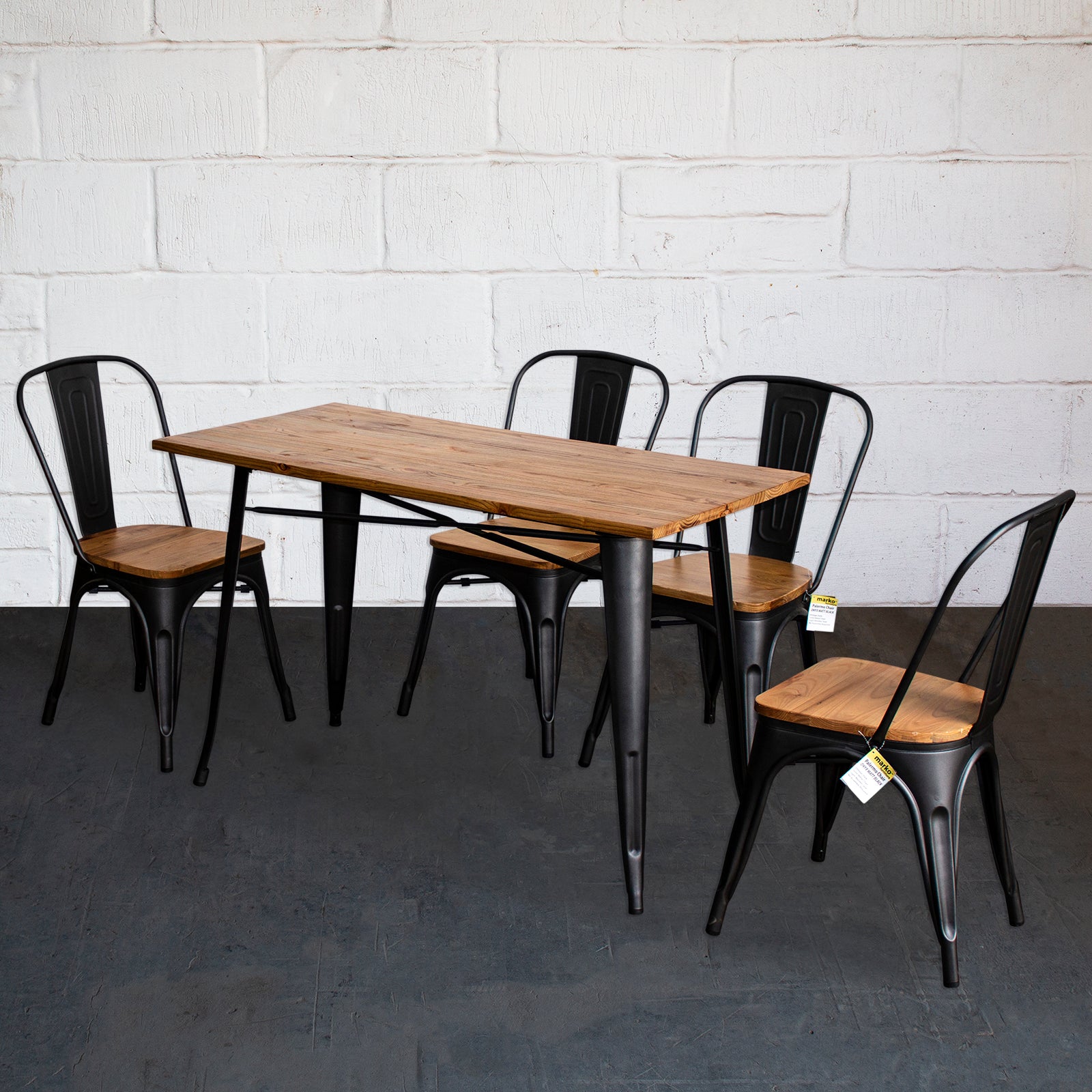 5PC Prato Table & 4 Palermo Chairs Set - Onyx Matt Black