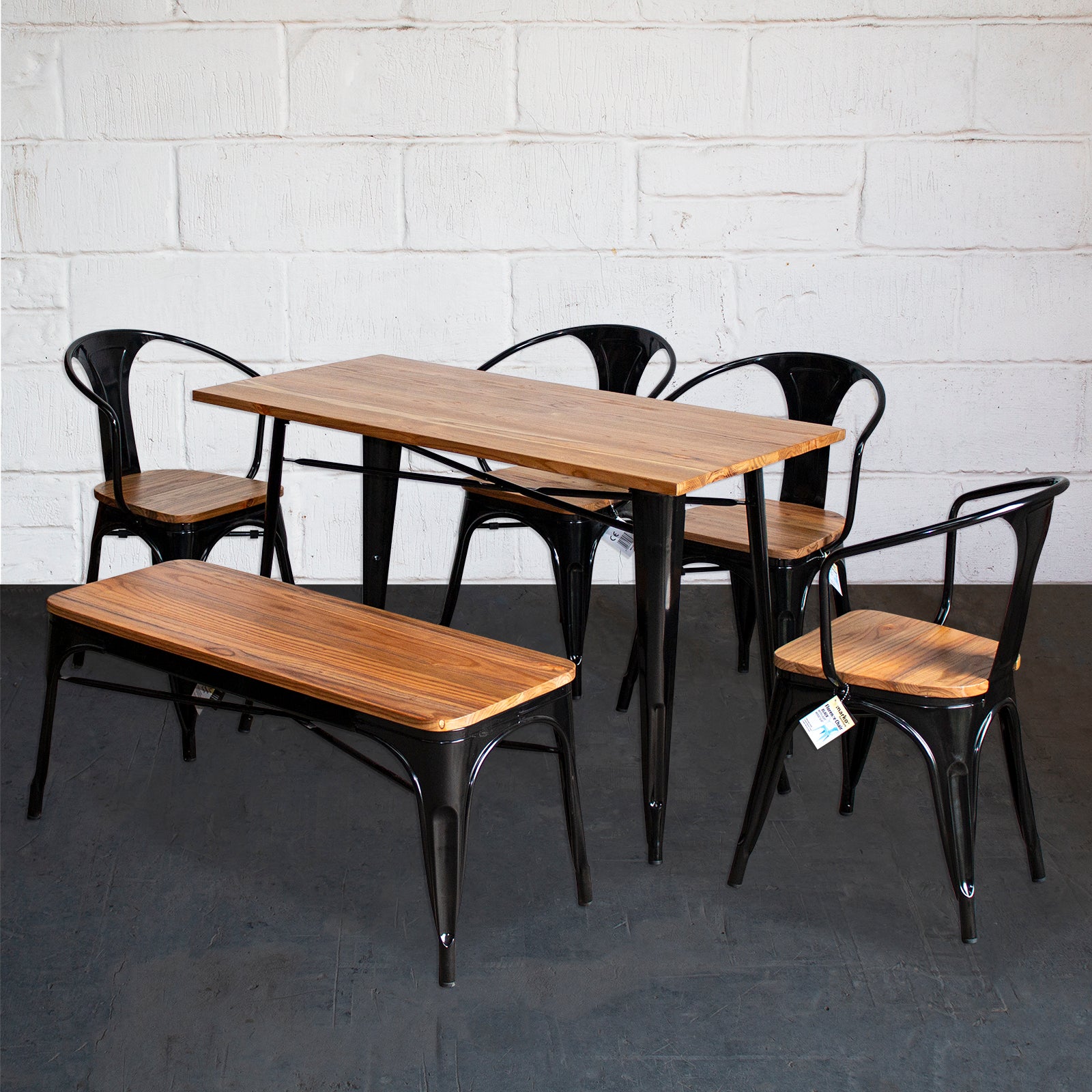 6PC Prato Table, 4 Florence Chairs & Sicily Bench Set - Black