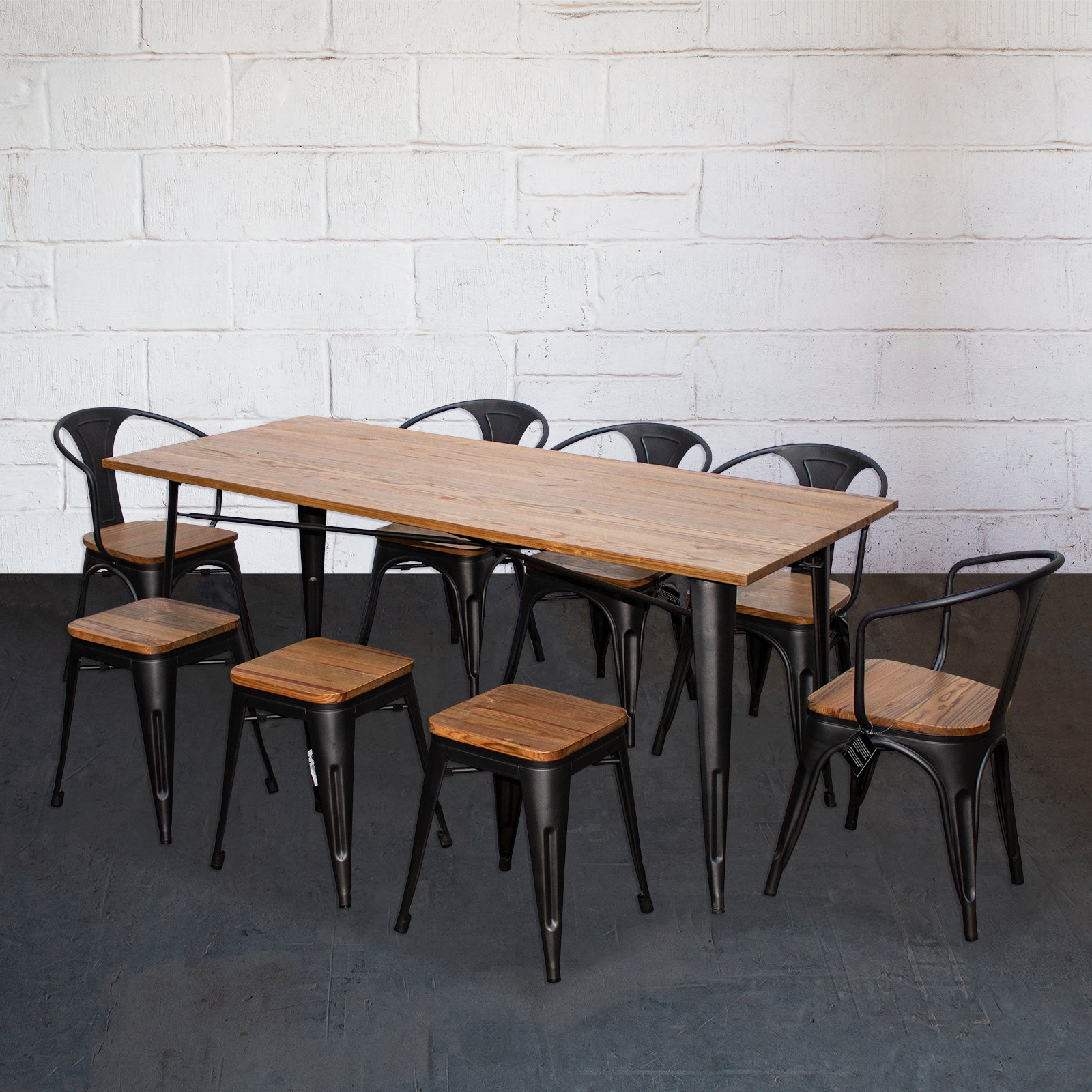 9PC Taranto Table, 5 Florence Chairs & 3 Rho Stools Set - Onyx Matt Black
