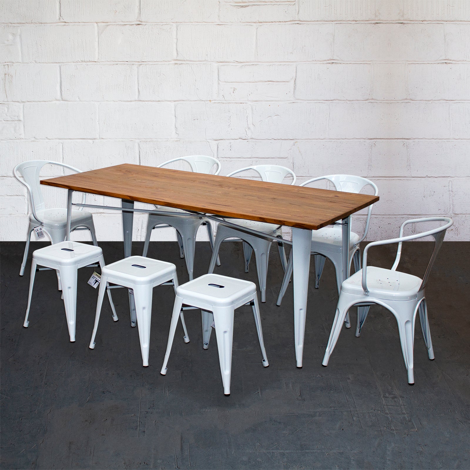 9PC Taranto Table, 5 Forli Chairs & 3 Castel Stools Set - White