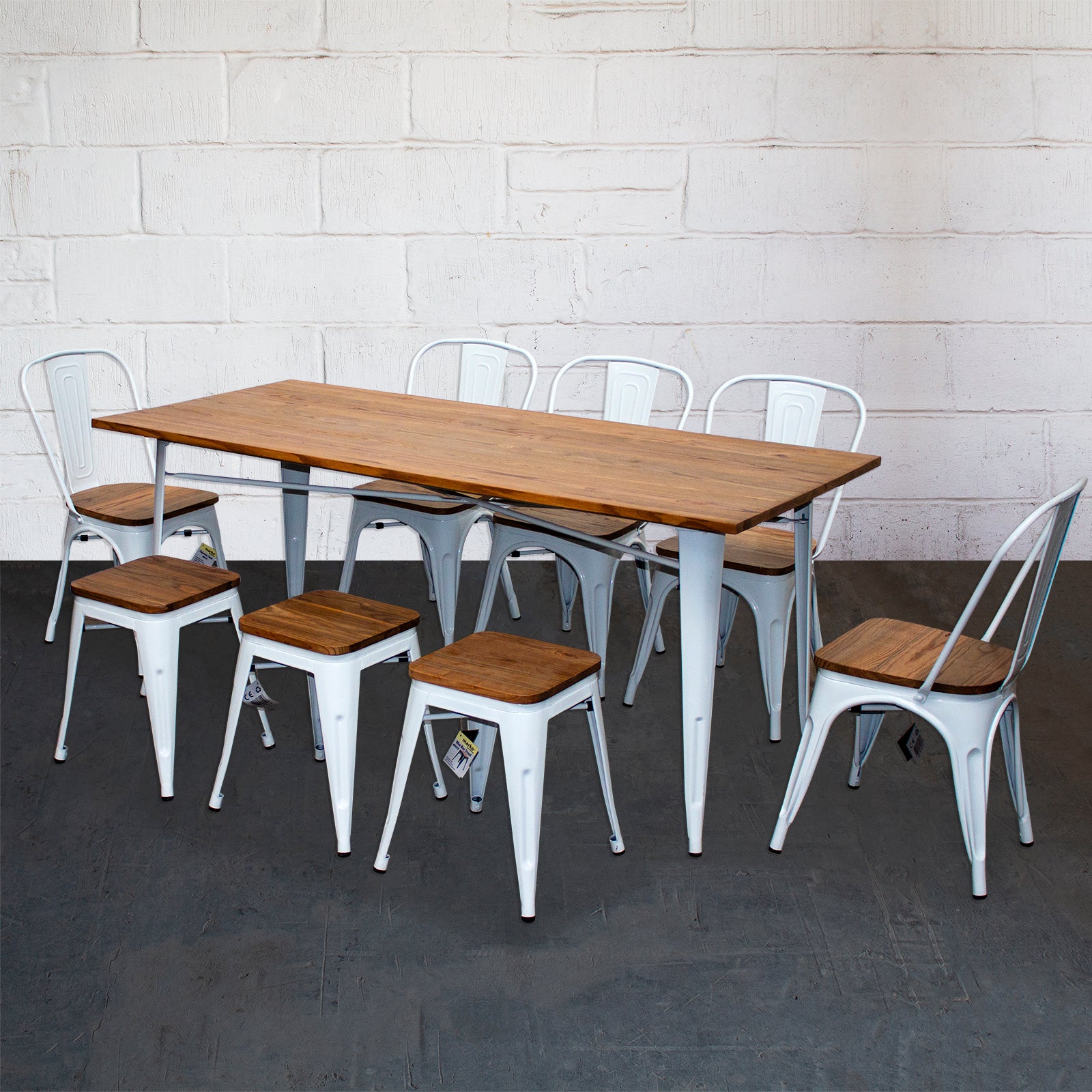 9PC Taranto Table, 5 Palermo Chairs & 3 Rho Stools Set - White