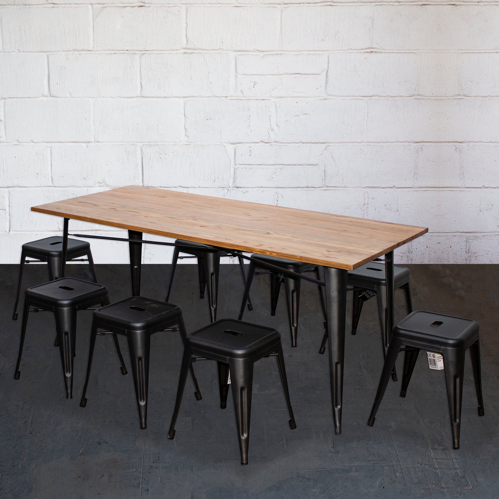 9PC Taranto Table & 8 Castel Stools Set - Onyx Matt Black